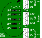 8.4. Lezer instellingen Wiegand of RS485, Jumper JP3 t/m JP7