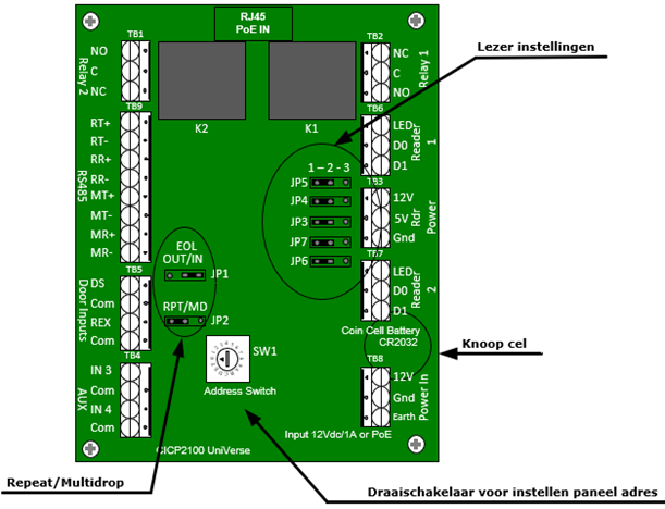 8.5.1. Locatie jumpers, adres switch, geheugen cel (knoopcel)