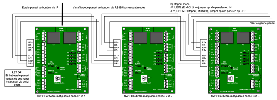 5.2. Meerdere uniVerse panelen met elkaar verbinden via de RS485 Repeat mode