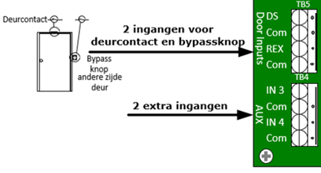 9.4. Stap 4. Aansluiten van lezer(s), grendel en eventuele bypass drukker en deurcontact