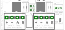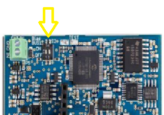 Door middel van twee jumpers wordt de busvoedingsspanning galvanisch gescheiden.