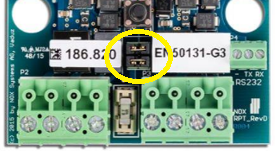 RPT als een seriële RS232-gateway (van RS232 naar NOX BUS): De bias-weerstanden moeten in de stand AAN(ON) staan bij schakelaar S2.