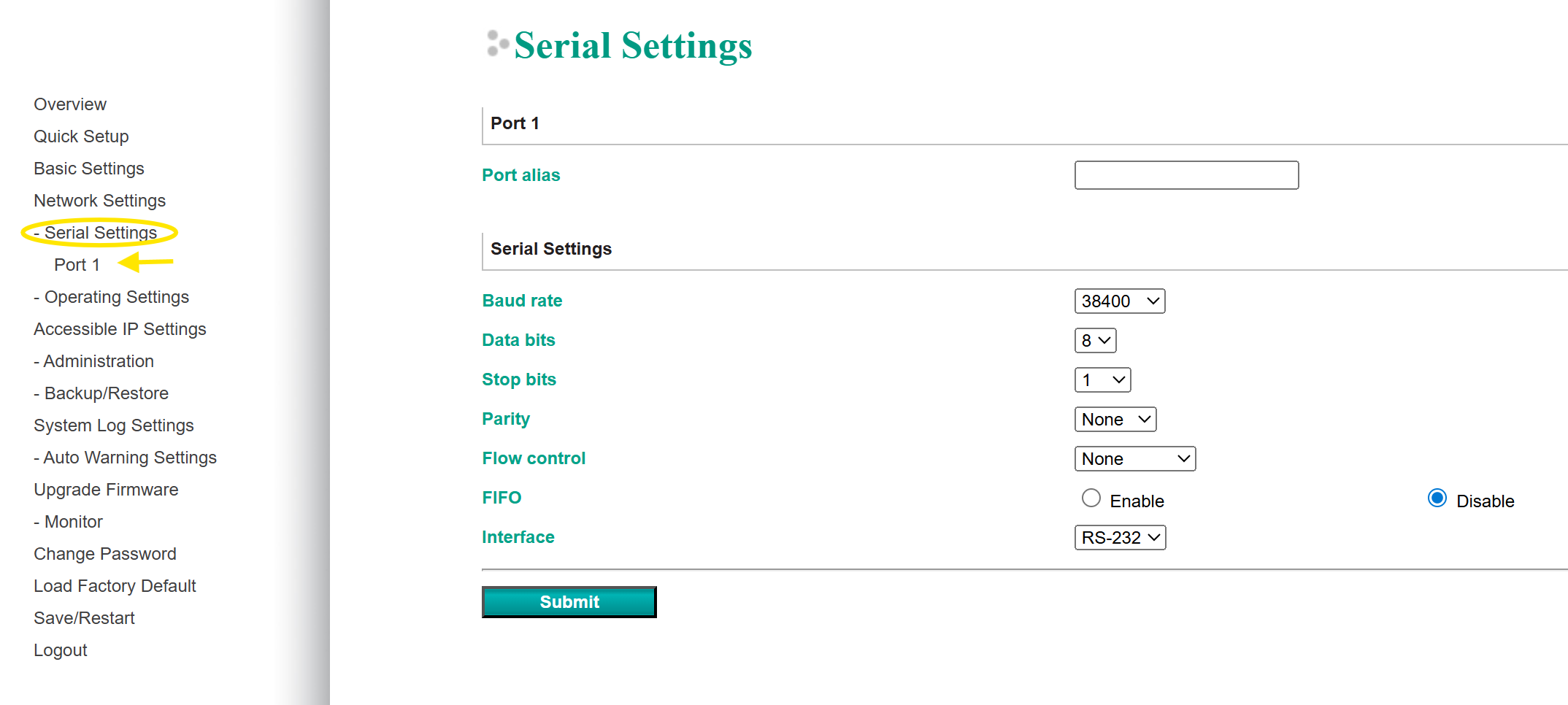 Om de instellingen van de MOXA te controleren of te wijzigen geef je het Ip adres in de webbrowser in.